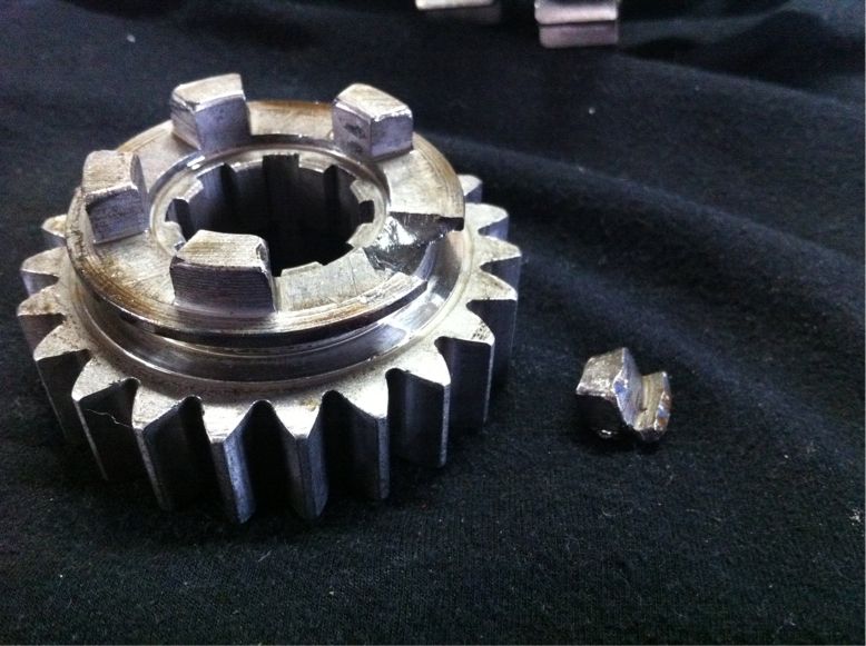 ギアをチェックすると、メインシャフトのセカンドギアが割れてました・・・