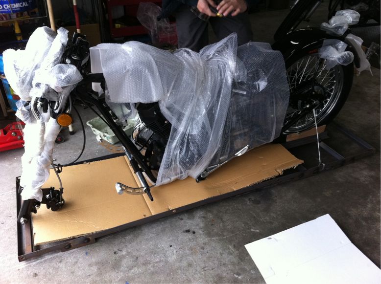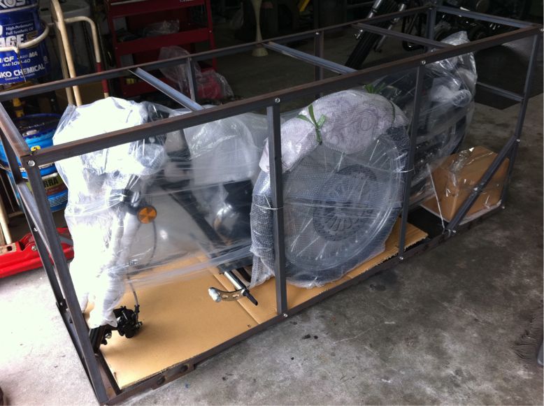こんな感じで、前輪が外してある状態で、入って来ます。