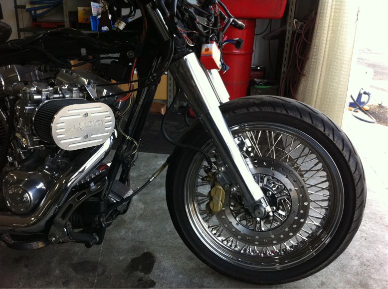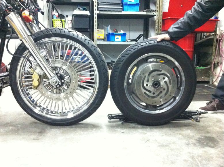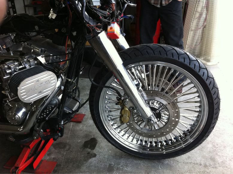 そして、そのFLHXのFホイールが先日入荷し、交換したビフォー、アフターの模様を。。。