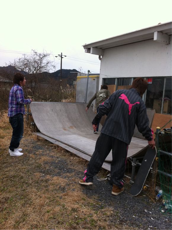・・・で、前に岩国スケボーパークで声をかけた、スケーター達も遊びに来てくれました。。。