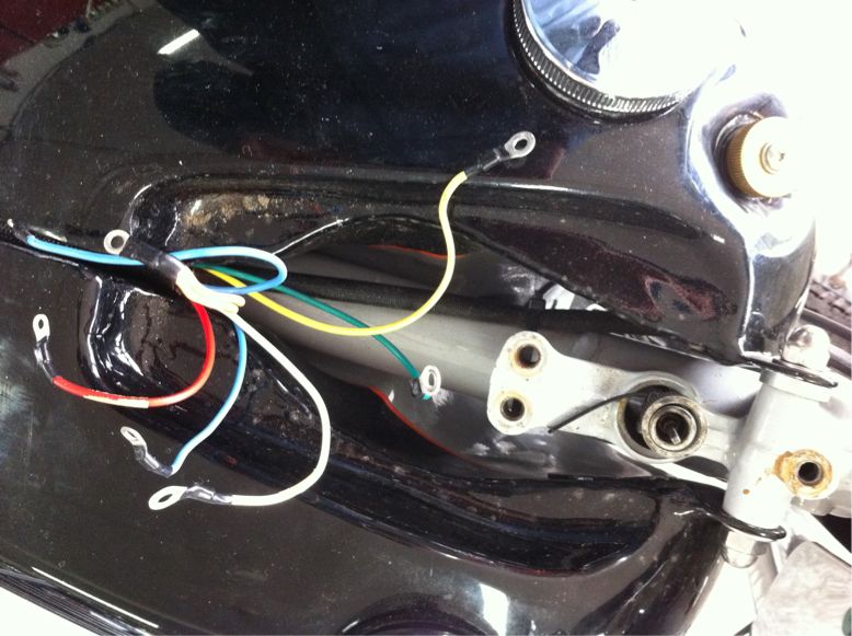 本来は、この電球を介して、オイルプレッシャースイッチなどにいき、そのスイッチでアースするかしないかで電球の点灯の有無に繋がり、ライダーに知らせる役目になっている訳であります。。。