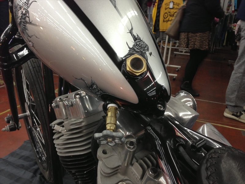 で、みなさんのバイクはチョッパーカスタム車両なので、タンクが小さいこと、小さいこと・・・σ(^_^;)