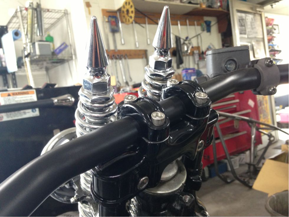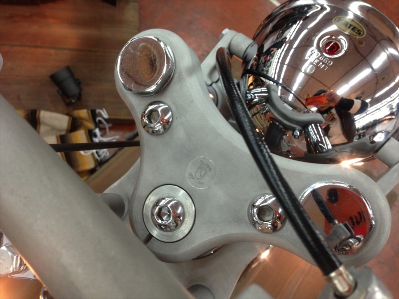 クランプがナローというこのパーツの特性は活かせれませんが、このクランプ自体のカッコよさに加え、通常よくある直付けライザーよりも1インチばかしは低くハンドルを付けれます(^-^)/♬