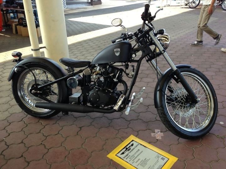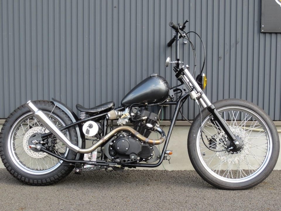 US仕様のリアフェンダーに、フレームとラインを合わせたドラッグパイプマフラー、シートなど、全体的に抑えたカスタム・・・