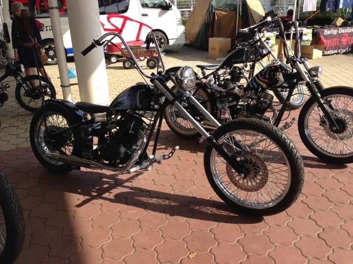 わぉ!ネック角変更加工にロングフォーク☆スカイハイバーにロングシッシーバーで、ロングチョッパーに大変身!!ワイルドだぜぇ〜〜☆☆